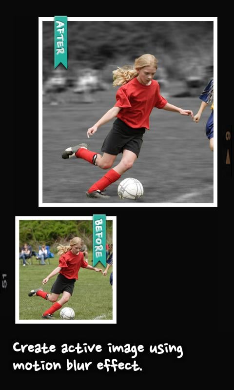 AfterFocus allows you to create DSLR-style background blurred pictures by simply selecting focus area for an image. The app comes with Smart focus area selection which recognizes the focus area to apply blur to. To emphasize on moving things, there’s a Motion blur effect present inside the app.