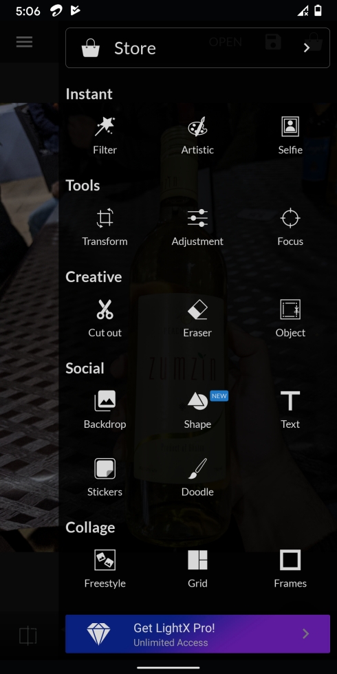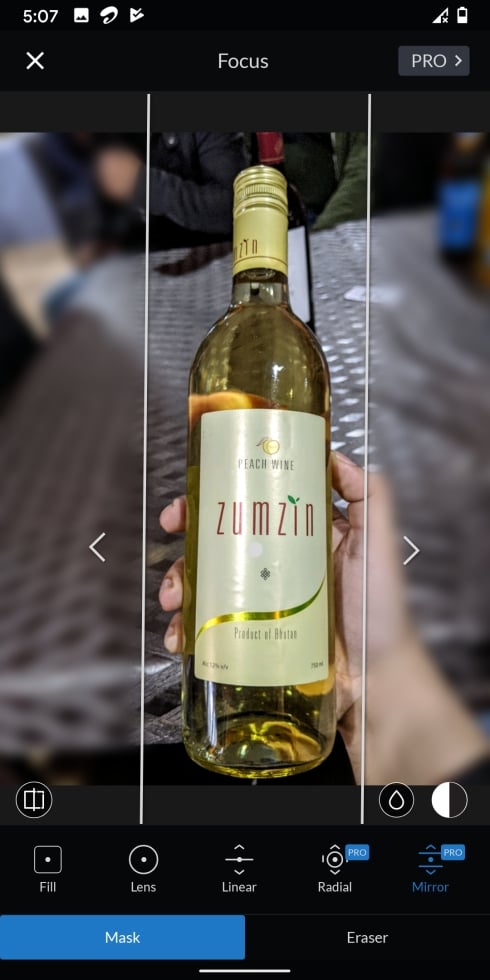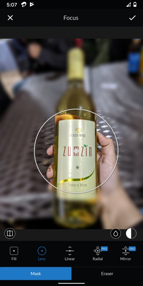 Moving on to third-party apps, LightX is one of the popular photo editors which offers a way to create a blur effect on any of your pictures. Tapping the focus button in the edit panel will get you different blur options including fill, lens, linear, radial, and mirror. Selecting Fill will blur the entire picture while selecting the options that will blur the area that is not selected. Besides blur, you can apply a vignette effect on the inner and outer regions of the blur mask.