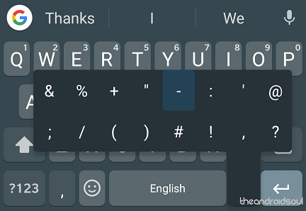 - On the Gboard press and hold the full stop button and you’ll see a range of other punctuations pop up to choose from.