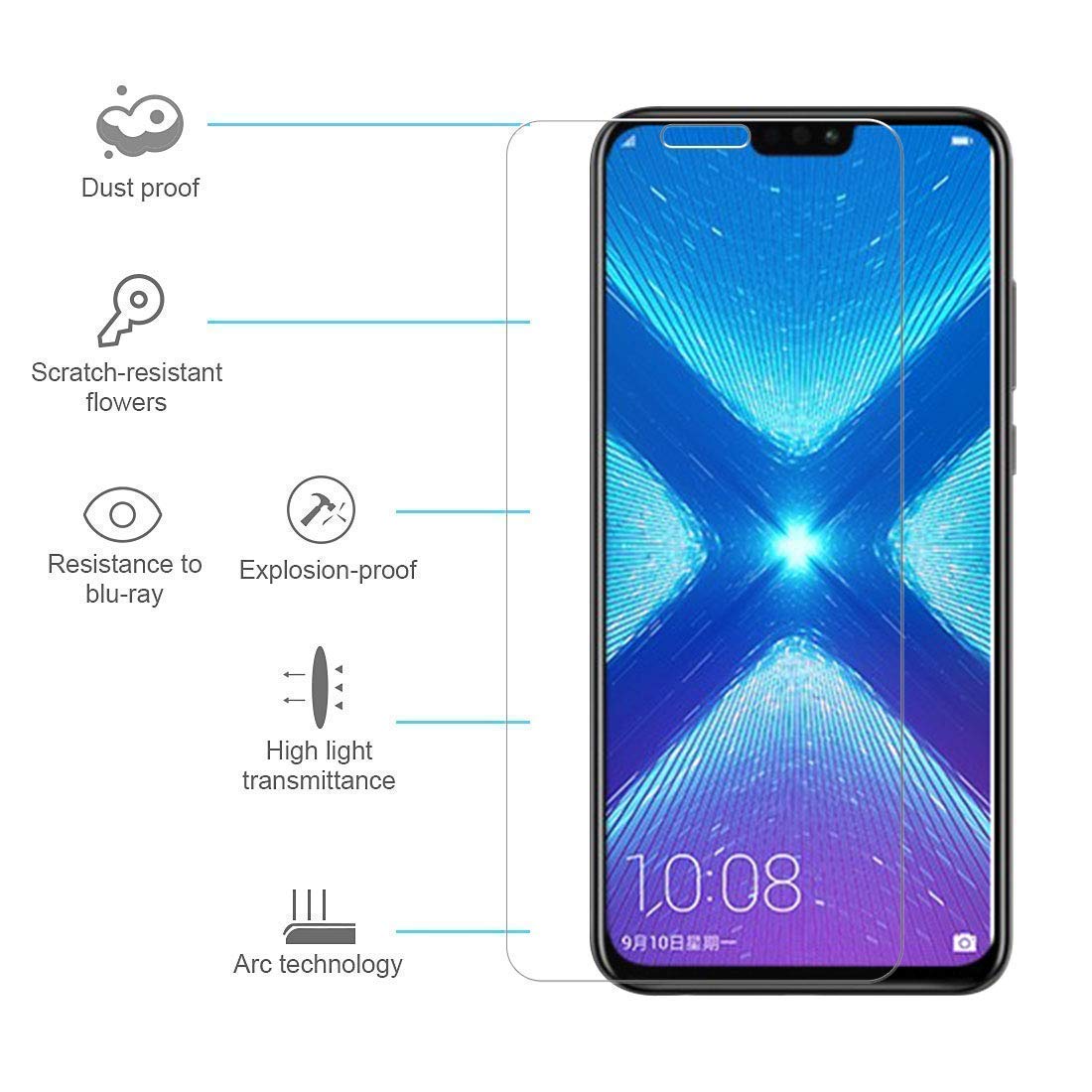 Also, this tempered glass effectively resists scratches and is finished with a fingerprint-repelling oleophobic coating, ensures that the phone’s display stays clean, clear, and vivid. Precisely cut from Asahi Glass before layering on top an anti-smudge coating, maintaining the Honor 8X’s original high-definition viewing experience And high-sensitivity touch response has never been easier.