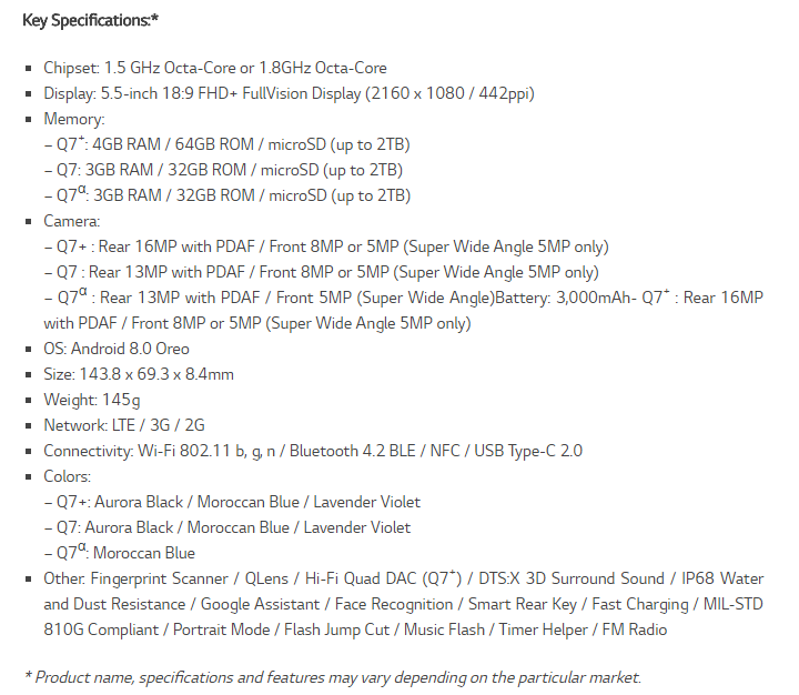 So, if you really like the LG G7 but can’t afford it, the best option is to tap into the powers of the LG Q7, which comes in three variants whose availability and pricing is market dependent. For instance, those in the U.S. can grab the Plus variant through T-Mobile.