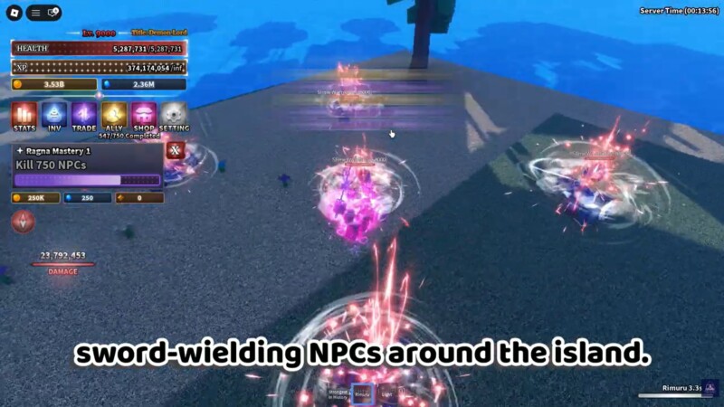 Among all available islands, Slime Island stands out due to its manageable enemy layout and fast respawn cycles. Although the island features slime enemies as its thematic core, sword-wielding NPCs are present and spaced efficiently enough to allow consistent farming loops.