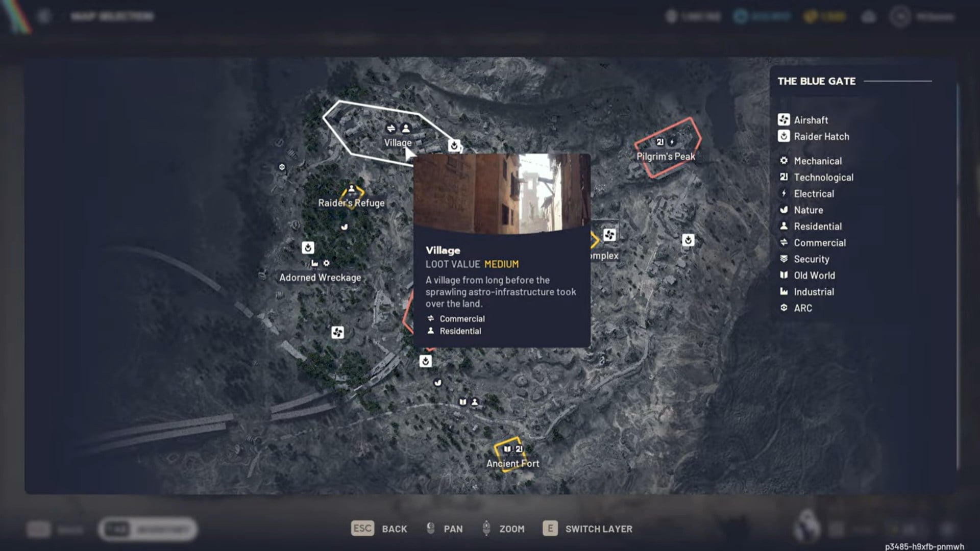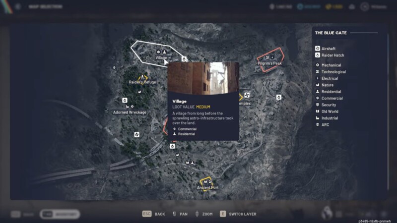 The Blue Gate, leading to the Village area in the top-left section of the map, is classified as both residential and commercial. This classification is important because it aligns directly with the item’s spawn tag. The Village contains homes, storefronts, and mixed-use interiors, all of which support the pillow’s loot table.