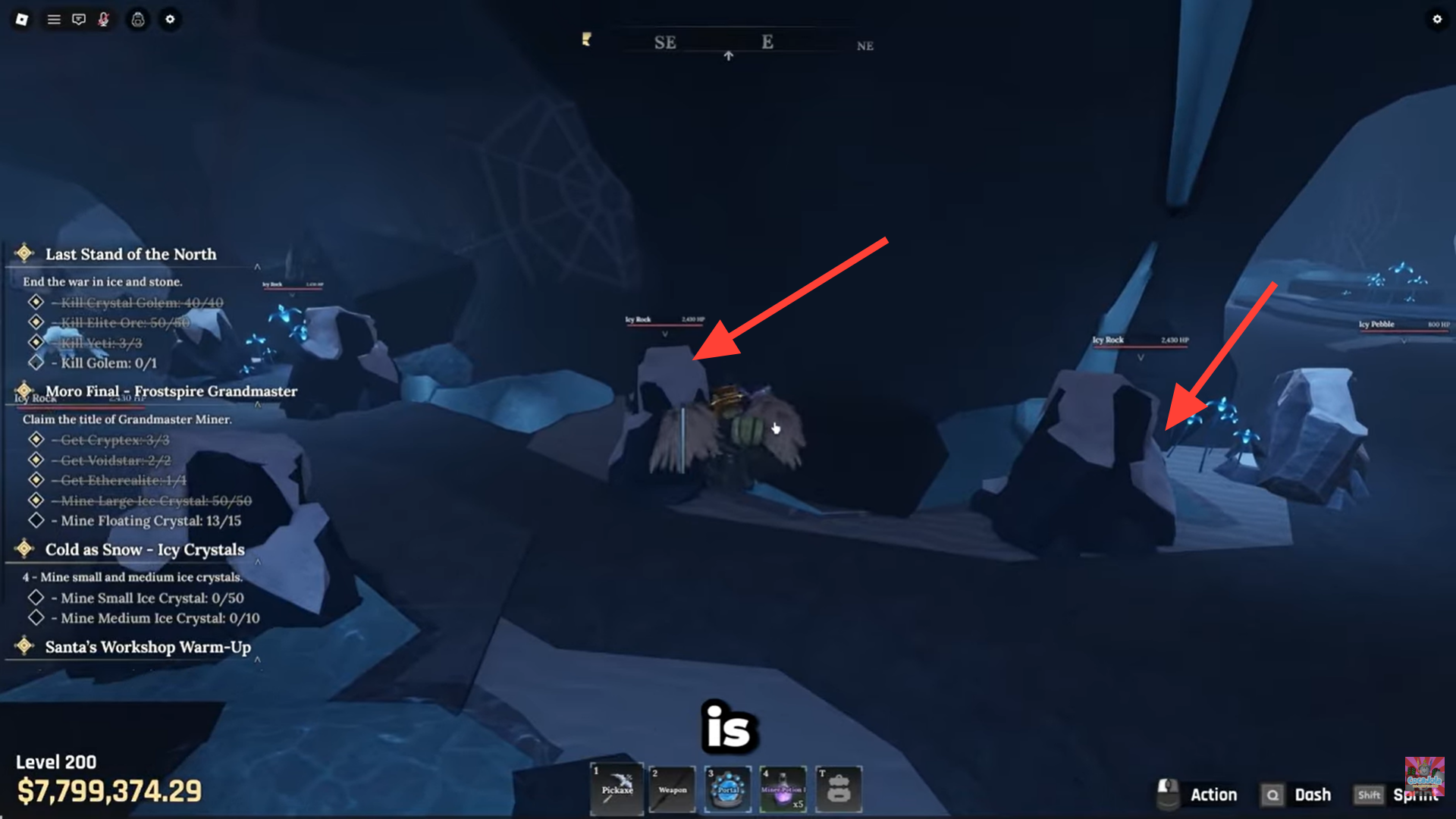 Gather Snowite, Frost Fossil, and Velchire from Frostspire Expanse caves and surface nodes. Focus on fast-respawn areas to save time.