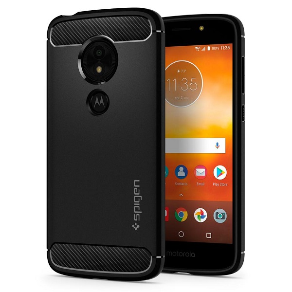 Feel like you need more rugged protection for your Moto E5 Play? Well, then this Spigen case might be of interest. Like all the rugged cases offered by the company, this one also makes use of Air Cushion Technology to offer drop defense. Featuring a matte black frame with carbon fiber detailing, the case will make your phone stand out, while also keeping it safe.