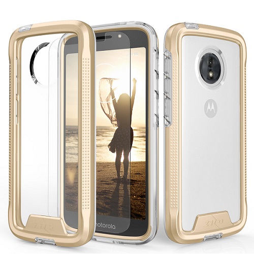 The Zizo Ion Series for the Moto E5 Play by Zizo Wireless boasts Military Grade 810.1-G certification. Even so, the case it’s quite lightweight and stylish offering an anti-slip grip. It also includes a tempered glass screen protector. It’s available with a Black, Pink, Gold or White frame and a translucent back.