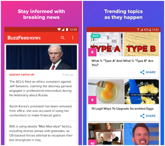 The Buzzfeed app started out as a hub for reporting the most sensational and controversial incidents happening around the globe. Over time it expanded to include works of serious journalism, becoming a wholesome news app in the process.