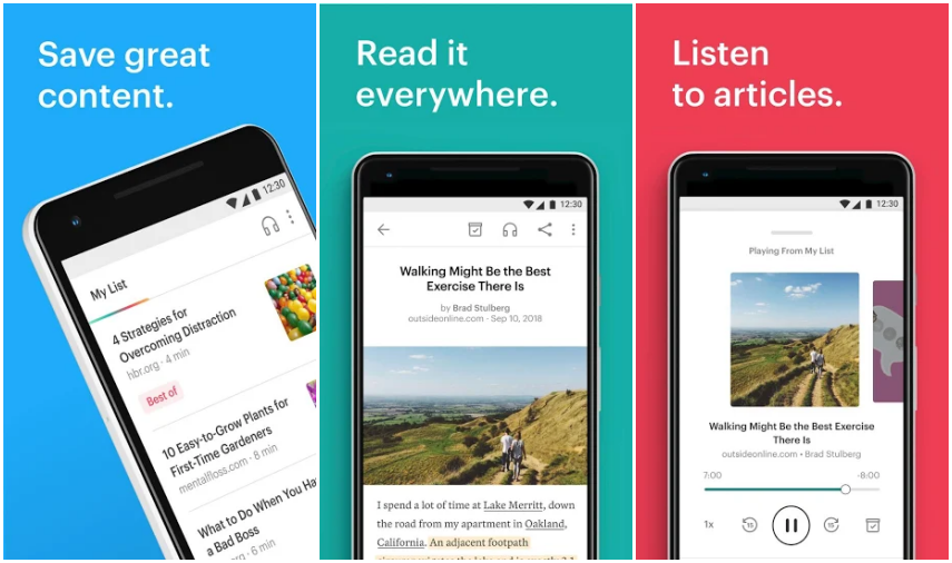 For the uninitiated, Pocket is a bookmarking app, currently the most widely used in the world. Its presence in this list is justified by how manageable it makes reading a hundred and one articles every day when you have your sights set on them, but do not have the time to do so.