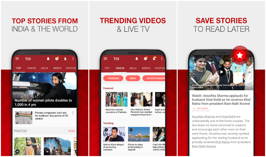Times of India is one of India’s most read newspapers. Its app gives access to the newspaper via a gadget. Categories such as Politics, Sports, Entertainment are extensively covered.
