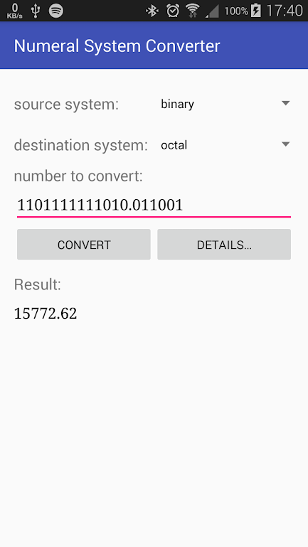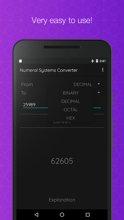 The app offers number conversion with an added advantage. It shows users the entire solving process of how the numbers are converted. Conversions can be possible between Binary, Decimal, Octal, and Hexadecimal systems meaning any of the four systems can be converted to other numeral systems using the app.