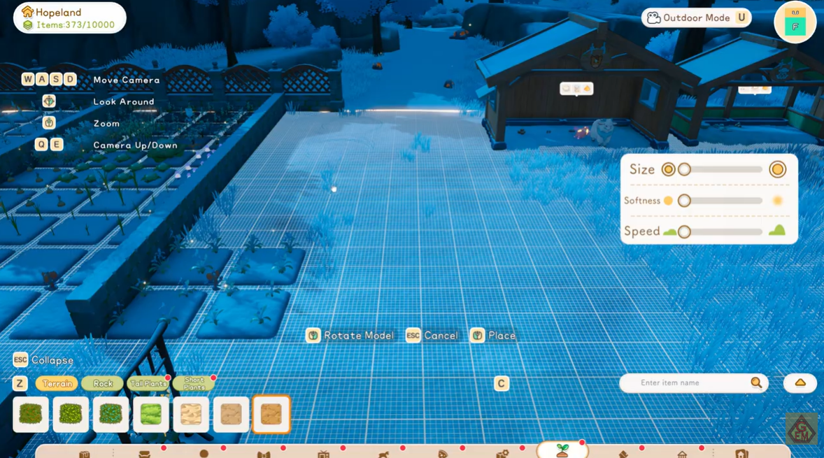 Replacing grass with sand is ideal if you want to build natural-looking walking paths. Soil works better for farming areas or structured landscaping. Because the brush size can be adjusted, you can create narrow walkways or wide open courtyards without affecting nearby decorations.