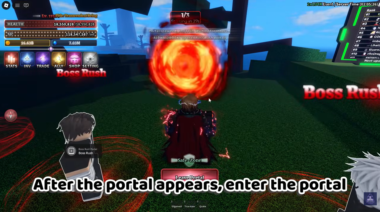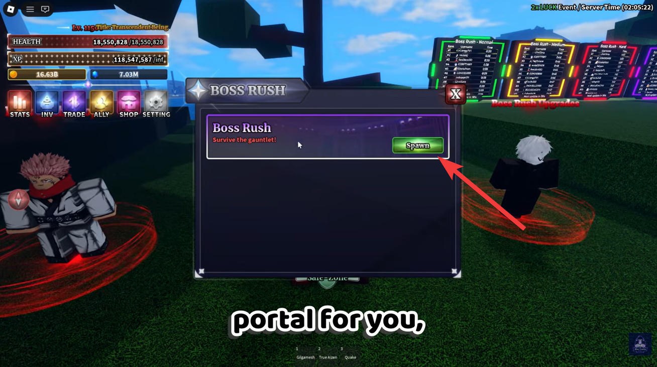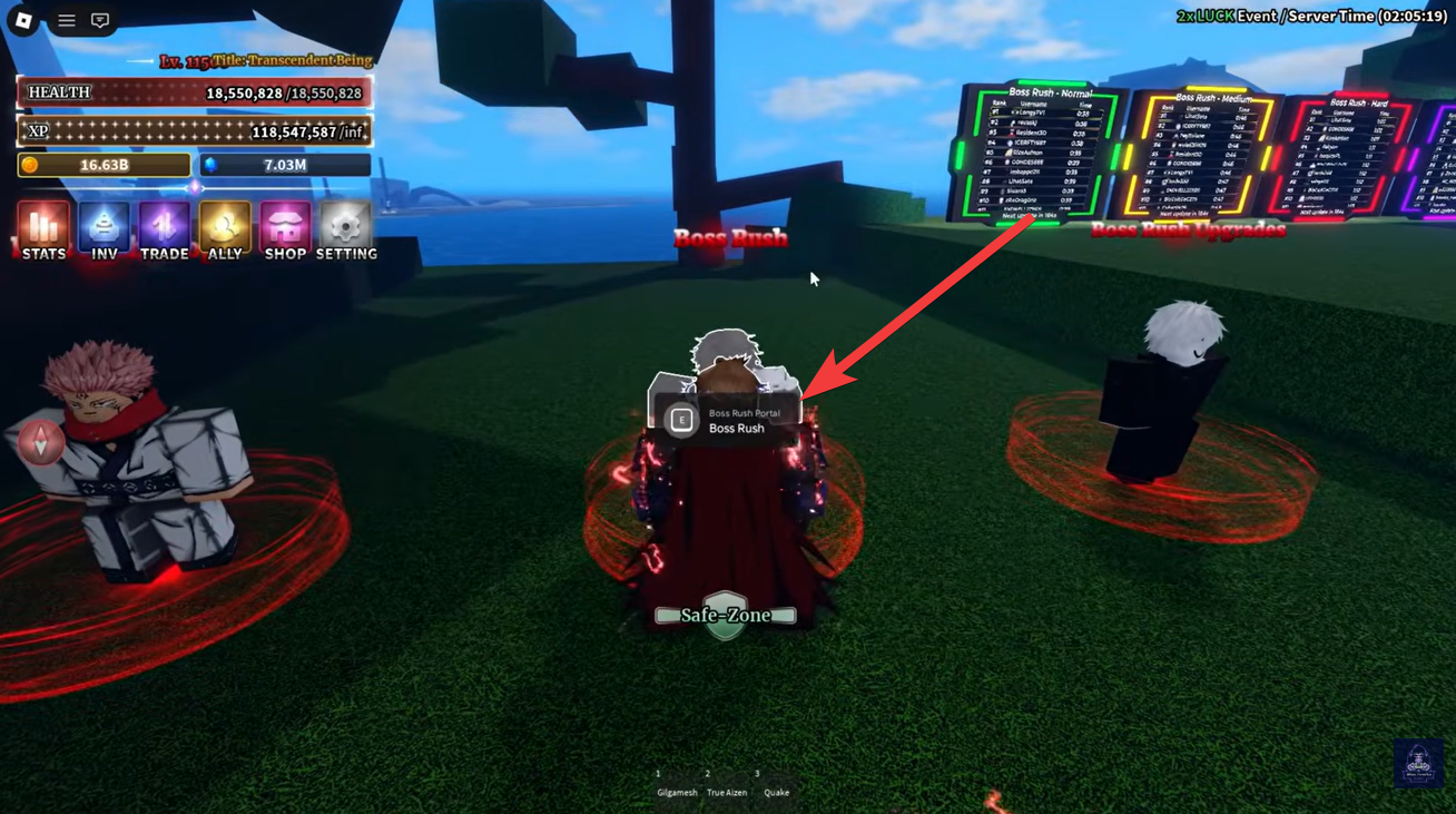 The core method for earning Rush Coins is clearing the Boss Rush dungeon after opening the portal. The dungeon works like a challenge mode where you face waves of bosses that must all be defeated.