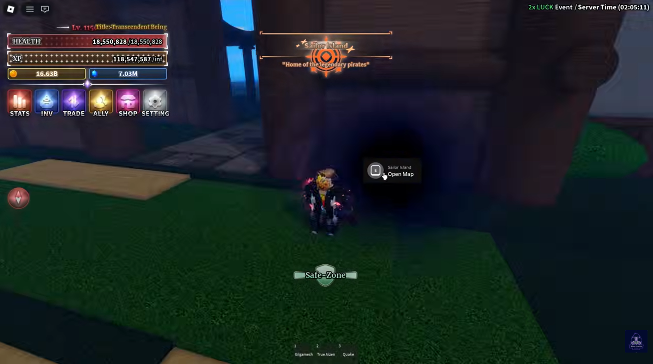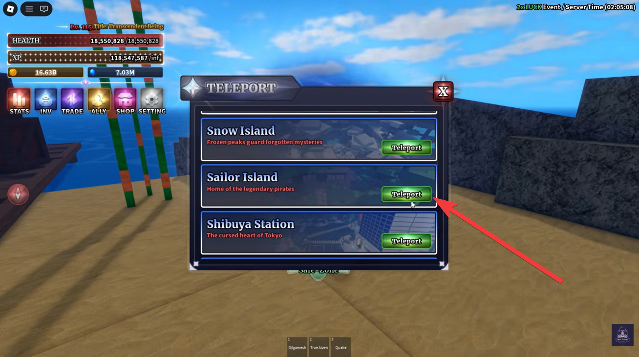 Travel to Sailor Island where the Boss Rush content is located. This island acts as the hub for the dungeon activity.
