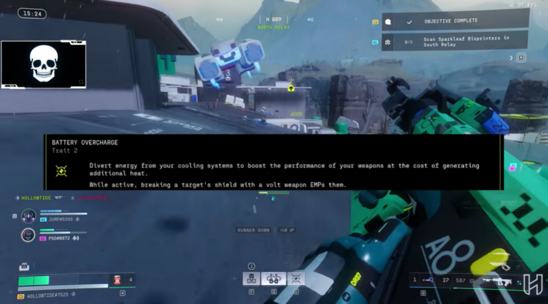 Battery Overcharge enhances weapon performance temporarily and allows battery weapons to EMP enemies once their shields break.
