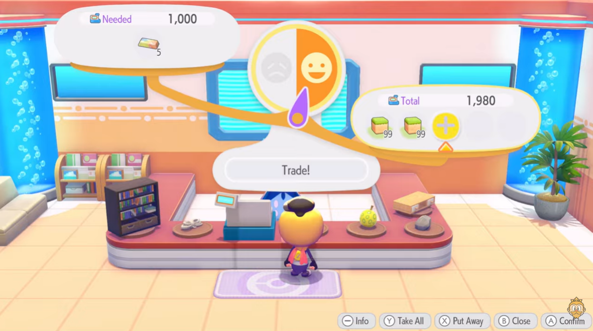 • You can remove stacked items by trading them at the Pokémon Center for other resources.