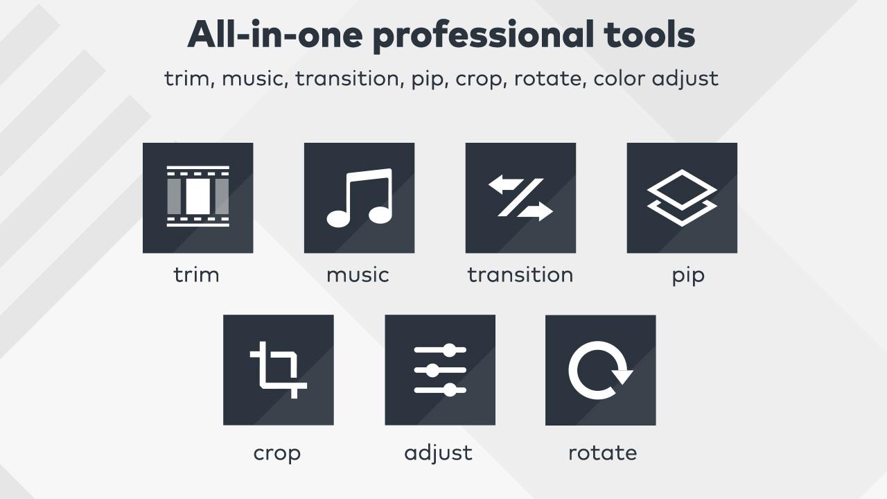 It has all the basic functions of a video editor, including the likes of cutting, slicing, music editing and more. You can even set your custom aspect ratios and use enhanced features like mosaic blurring and video speed adjustment.