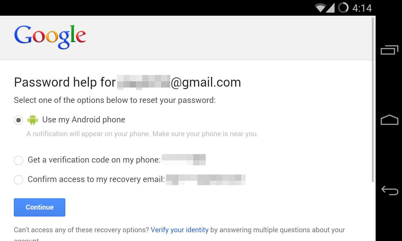 And that allowed someone with absolutely no knowledge about my Google account, and access only to my phone, to reset a new password for my entire Google account.