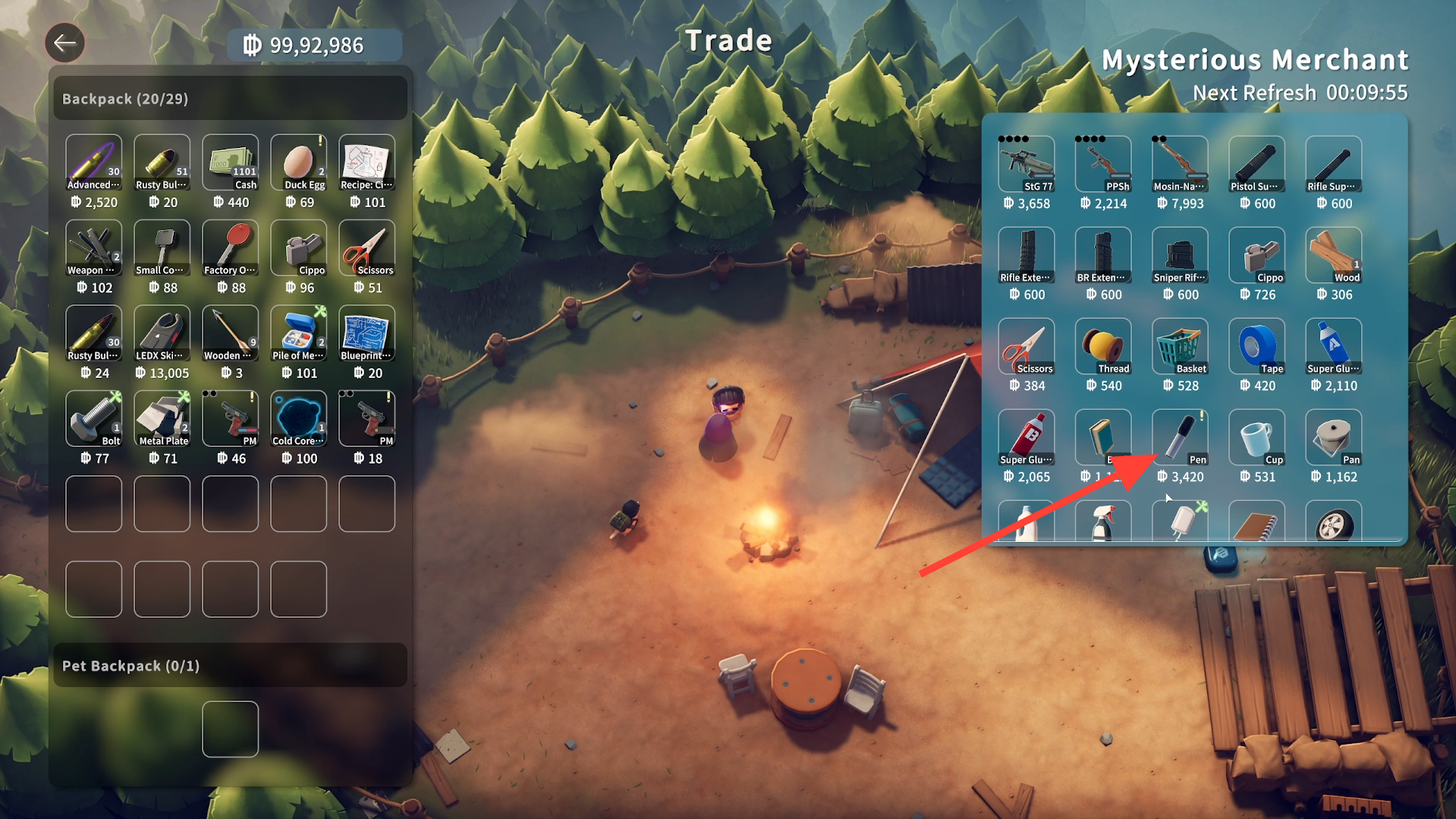 Buy 1 Ink, 1 Pen, and 1 Notebook from the Mysterious Merchant.