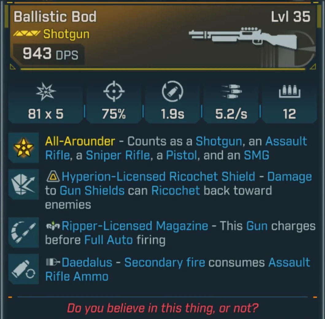 | Bod | Shotgun | Listed as an Axemaul arena drop | Legendary |