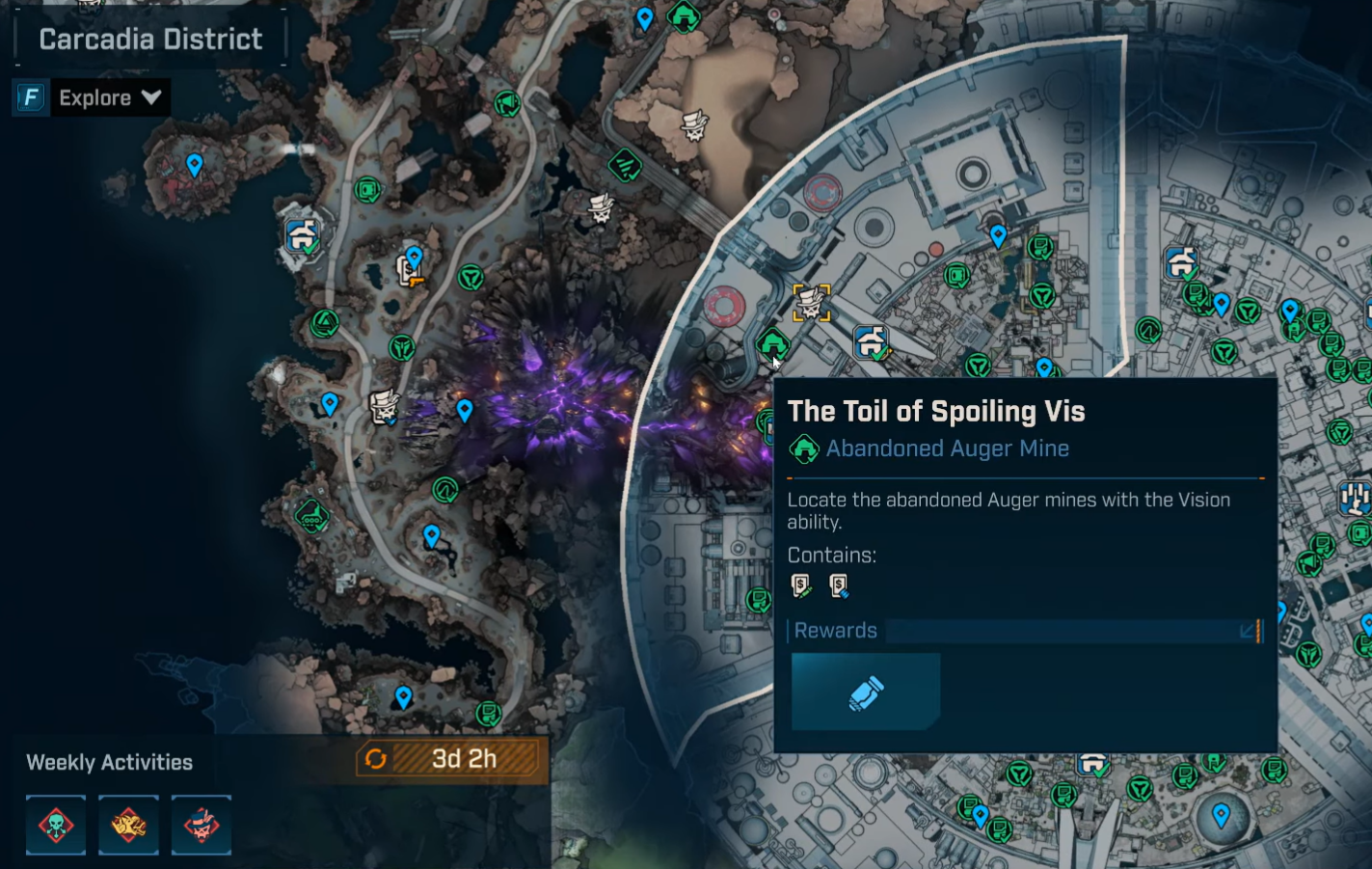 Travel to the Carcadia District and reach the Lockway fast travel point near the Abandoned Auger Mine.