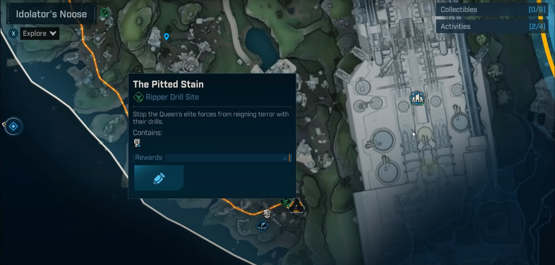 A quick-access location to the south of the map, The Pitted Stain is ideal whether just starting out or running a max-level character. Its proximity to the safe house and its returning value from gear sales make it an efficient loot loop, especially for solo farming runs.