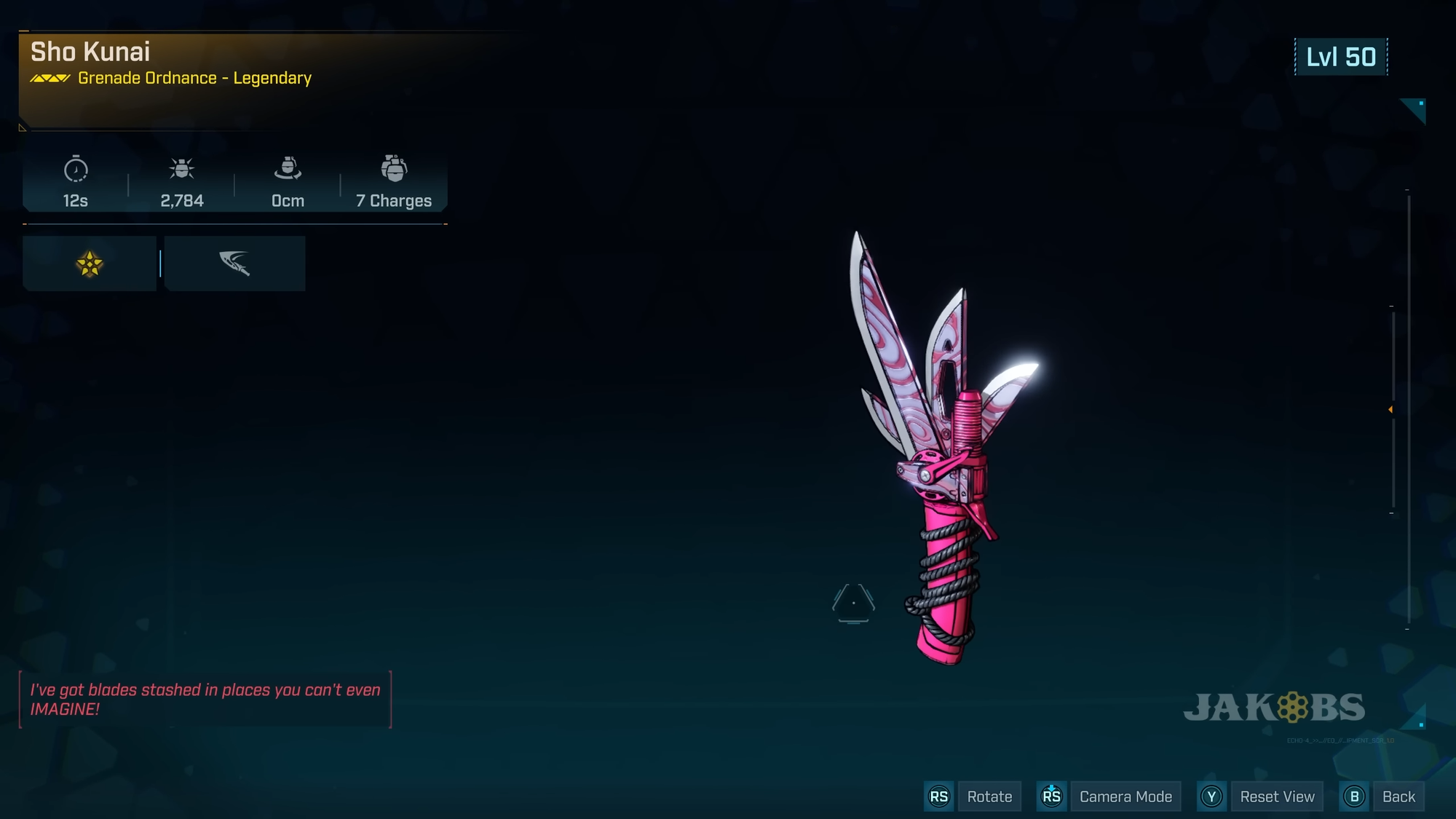 - Sho Kunai (Grenade): A Jakobs throwing knife grenade that grants stacking movement speed bonuses with hits.