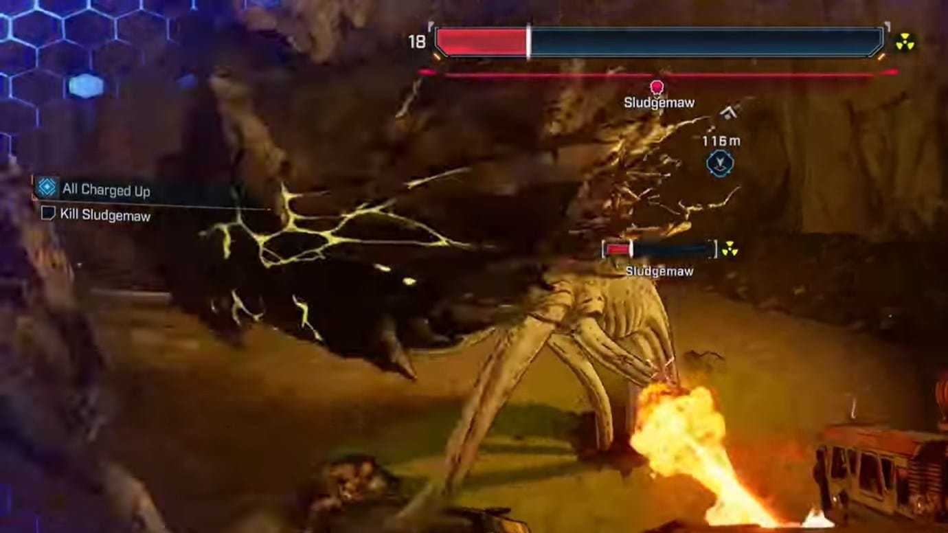 During the Null and Void mission in Idolator’s Noose, you also have a chance at finding Birt’s Bees. To get access to Sludgemaw, you have to do the quest Null and Void and be all charged up. They link to each other and are found south of the launchpad, and then, after the mission, you'll find the Moxxi sign outside the boss arena to farm him. This makes it a natural checkpoint for farming, since you’re progressing the story anyway.