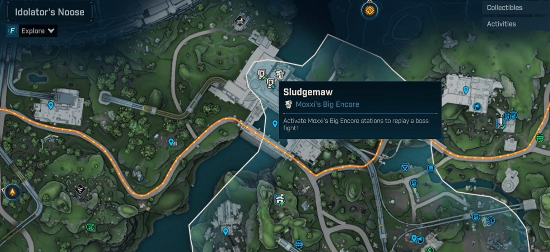 Once you’ve unlocked it, use Moxxi’s Encore to re-fight Sludgemaw or repeat Null and Void encounters without resetting the entire area.