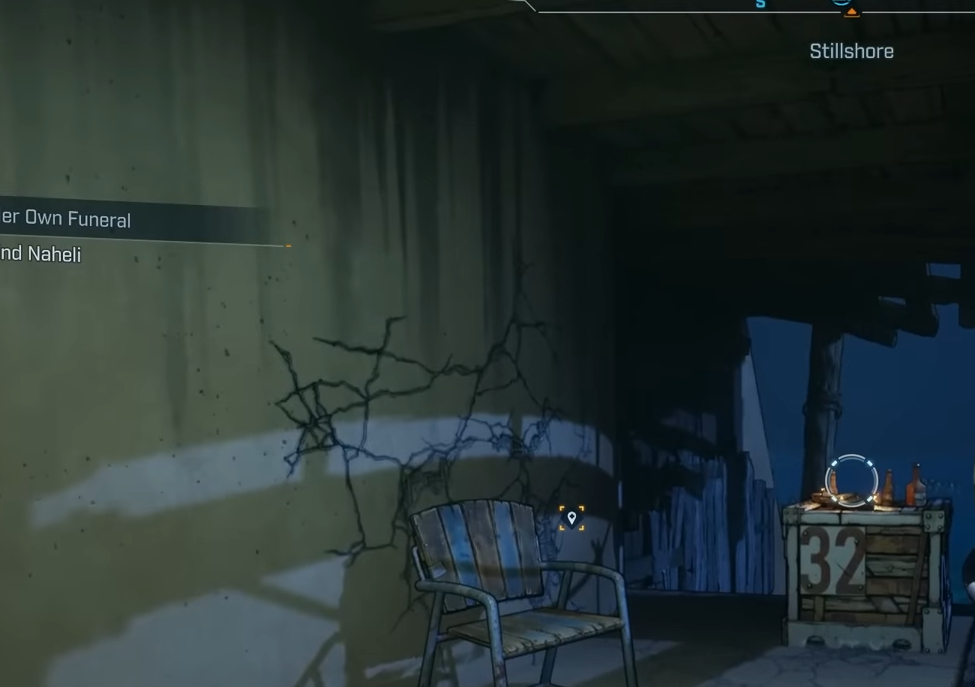 Head to Stillshore Point in the southwestern corner. Clear out Rippers around the larger houses, then drop into the water behind one. Jump onto the small dock and spot the fragment on a crate stamped with the number 32.