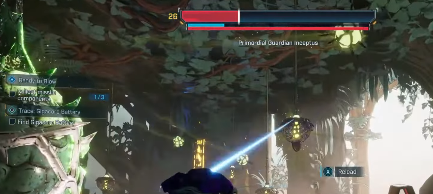 Shoot at Inceptus while observing its attack patterns and avoid its whip-like tail and claw slashes.