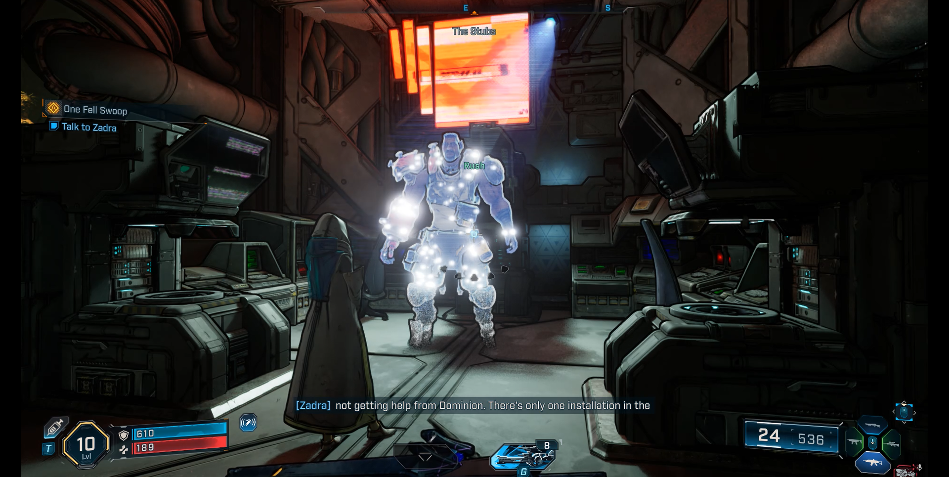 After the airship sequence, teleport (or be brought) back to Outbounders HQ. Find Rush (who’s in danger) and help him by clearing enemies. Be cautious of corrosion/environmental hazards.
