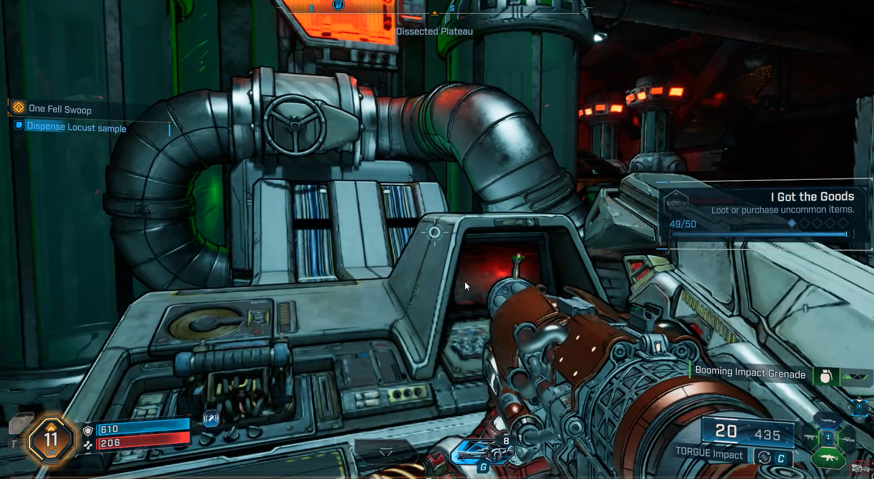 In the lab, clear enemies, then find the Locust sample dispenser.