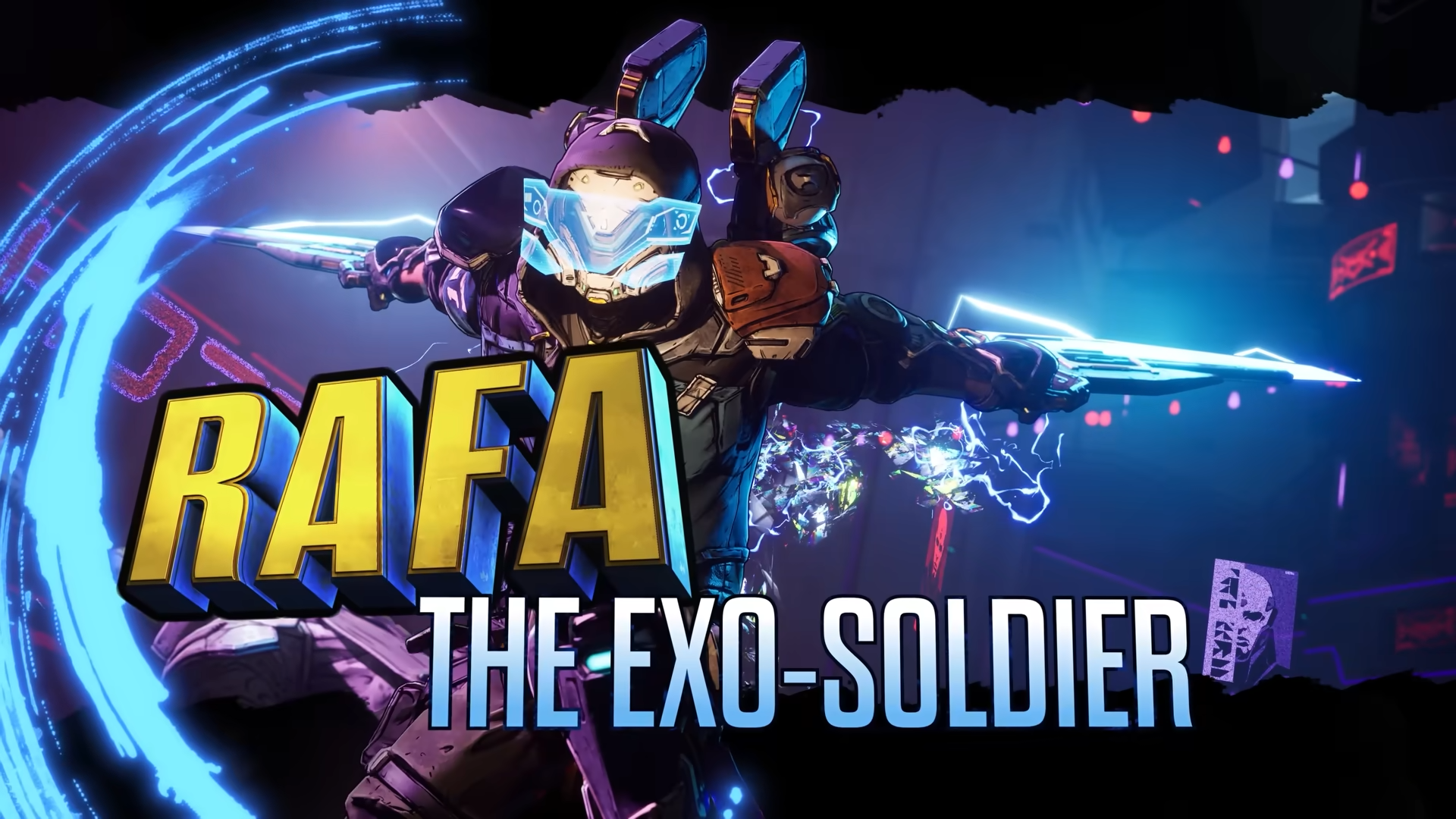 Rafa, the Exo-Soldier, is a former Tediore soldier wielding an experimental exo-suit. His trait, Overdrive, boosts stats during and briefly after action skill use, making him a fast, aggressive fighter. If you enjoy rogue-like agility or heavy firepower, Rafa’s your guy.