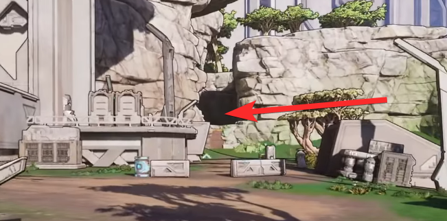 Move toward the next entryway until you reach a room with large fans. Turn left, follow the wall, and look up for a ledge.