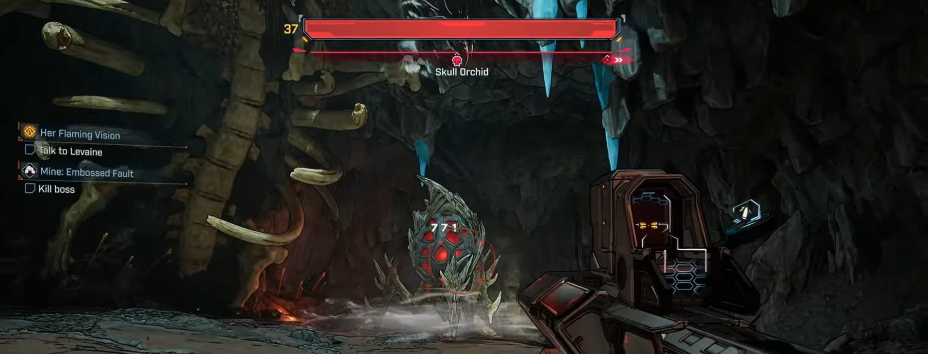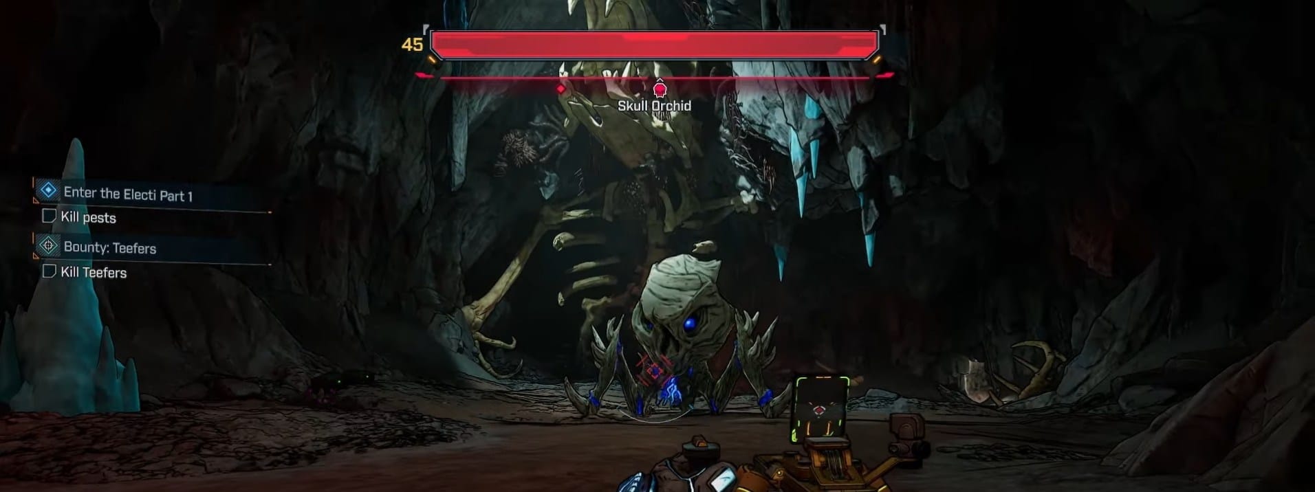 Continue deeper until the path opens up into a large chamber. This is Skull Orchid’s arena. Prepare your loadout before stepping into the center — multiple elements will be required, so carry incendiary, cryo, and at least one high-DPS backup weapon.