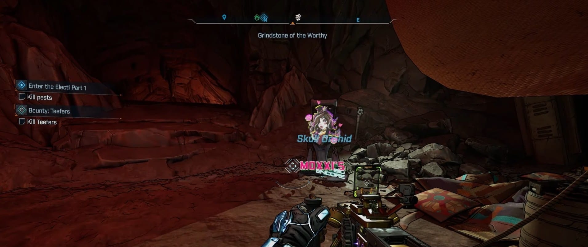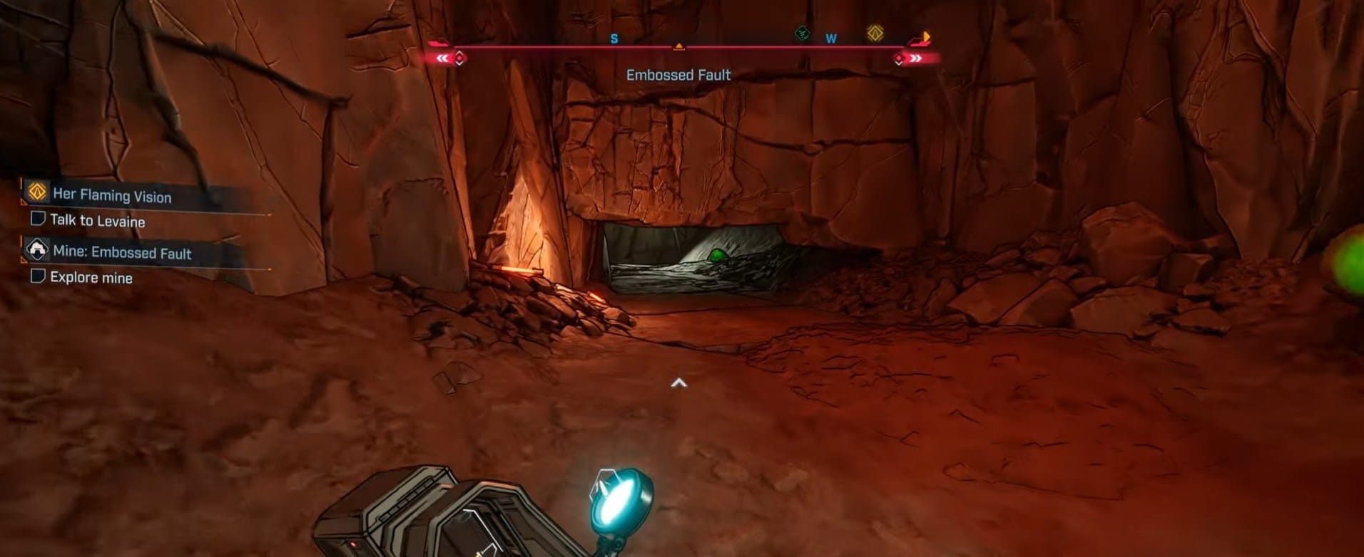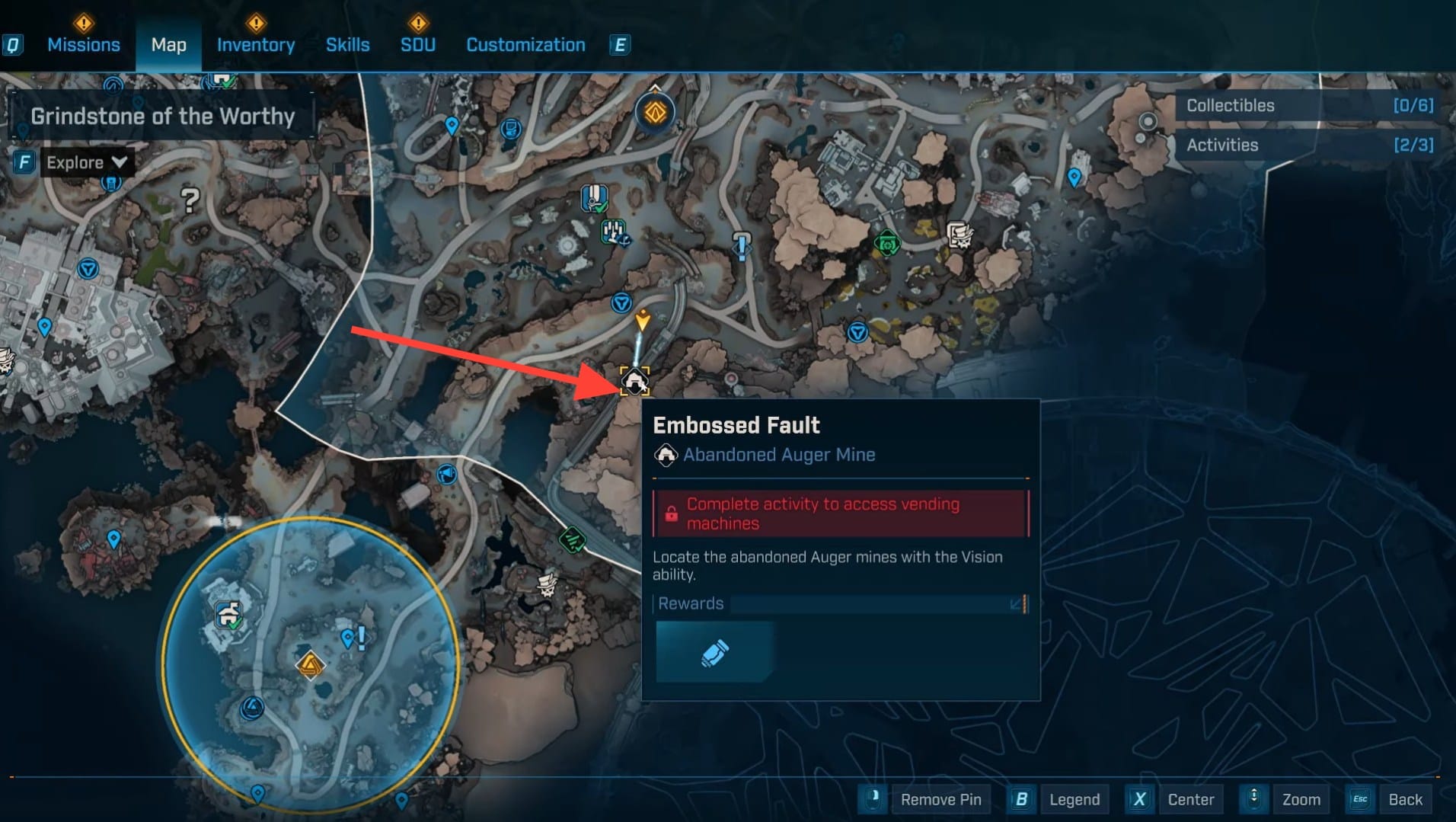 From Rustical Hurl, follow the waypoint toward Embossed Fault, the Abandoned Auger Mine inside Grindstone of the Worthy. Enter the mine and proceed through the linear tunnels, clearing out enemies as you go.