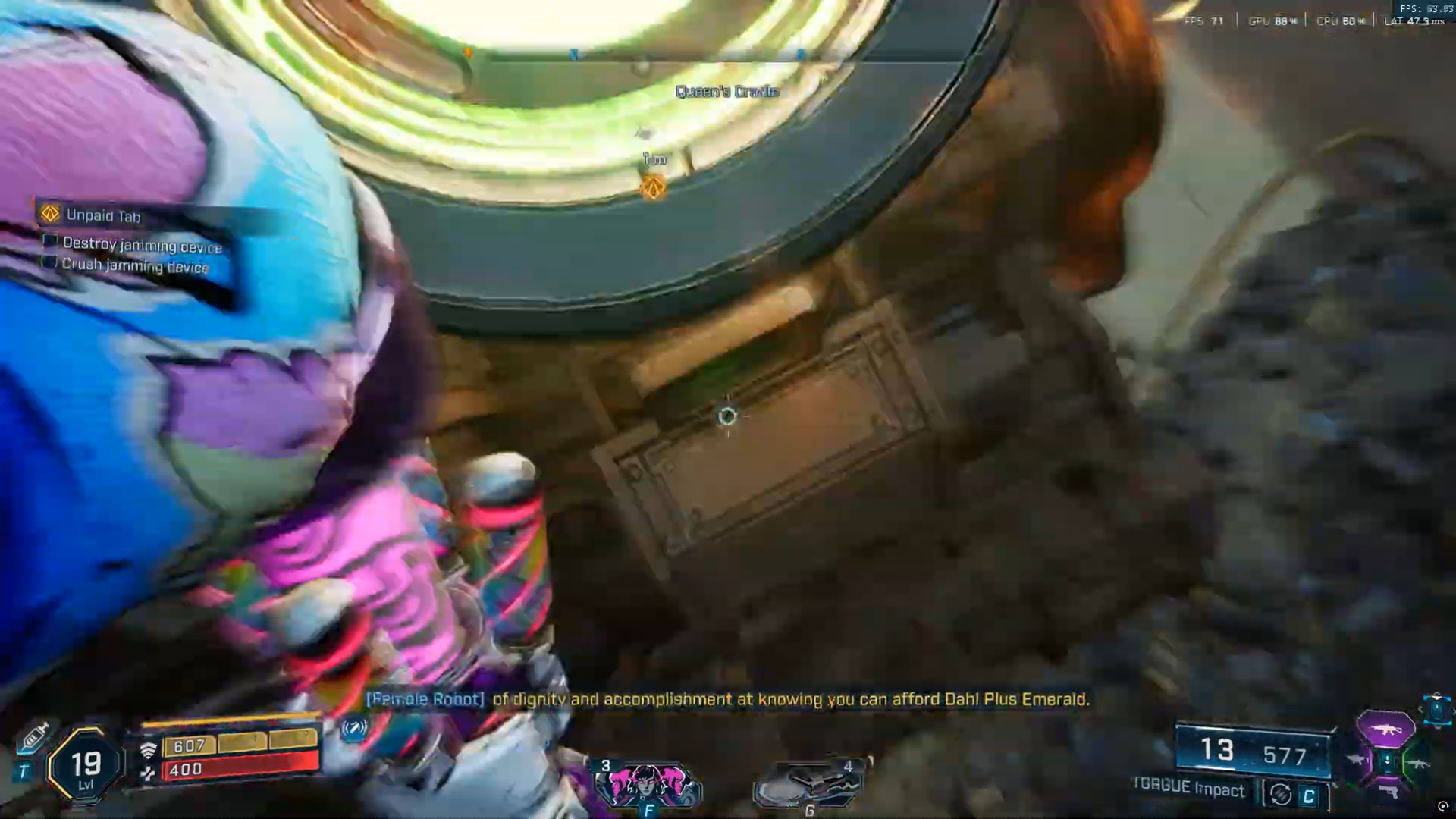 Climb using grapple points, then perform a ground slam to destroy the jamming device.