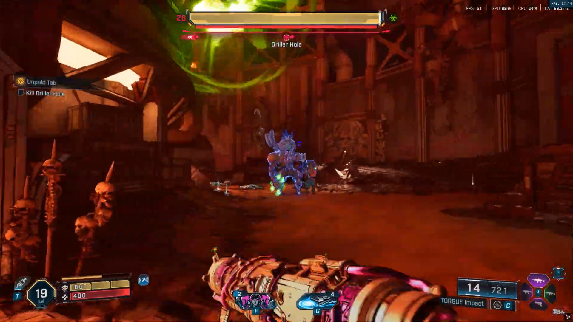 Engage Driller Hole—focus on stripping its armored health using corrosive weapons. Stay mobile to avoid radiation zones and waves of enemies.