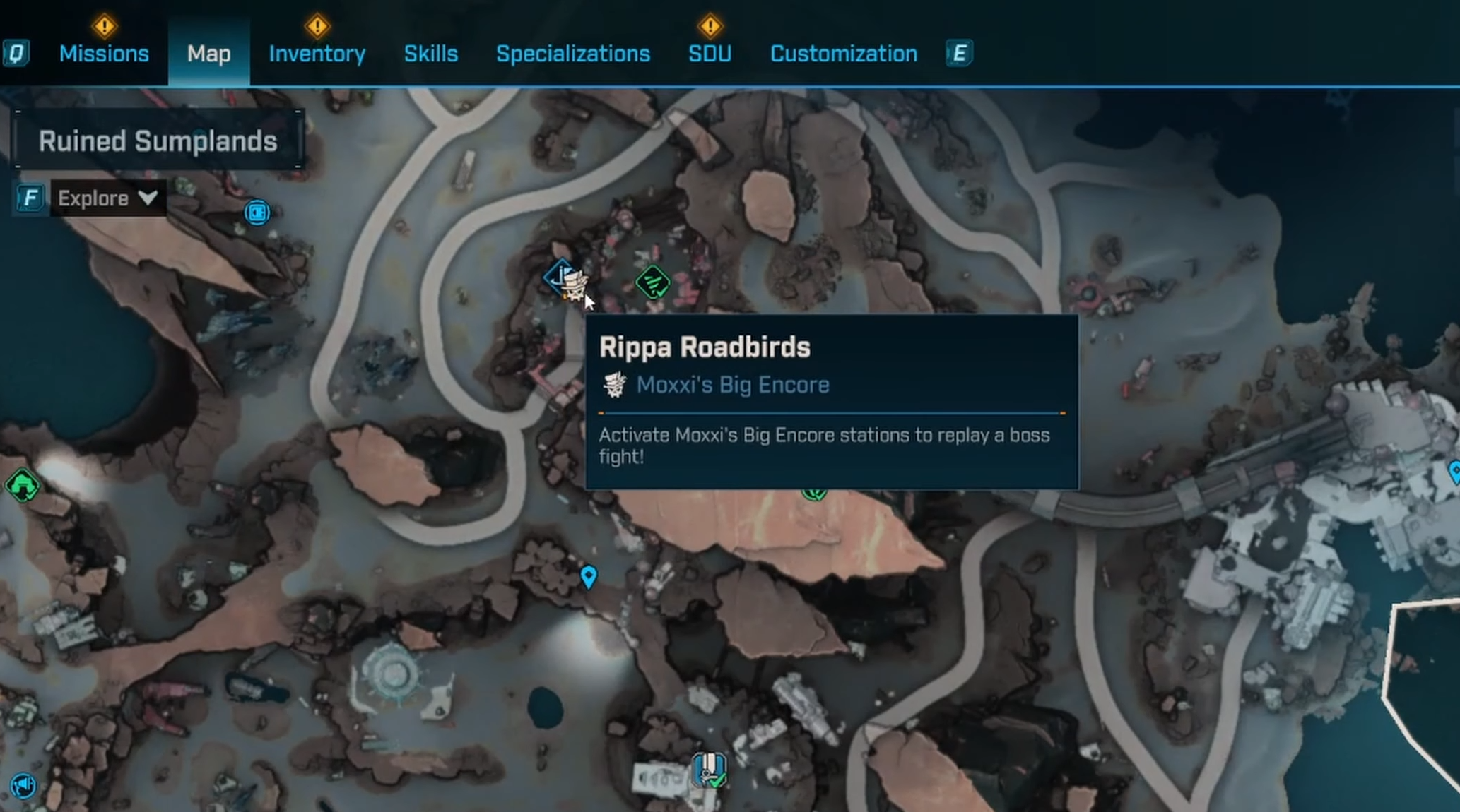- Players can use Moxxi’s Big Encore machine to respawn and farm the Rippa Roadbirds repeatedly.
