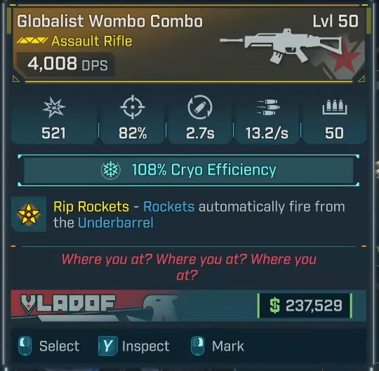 | Firing Style | Classic Vladof fast-firing with bonus rocket support |
