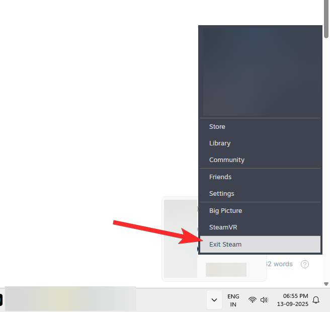 Open Steam and click on the Steam option in the top-left corner. From the dropdown menu, select Settings.