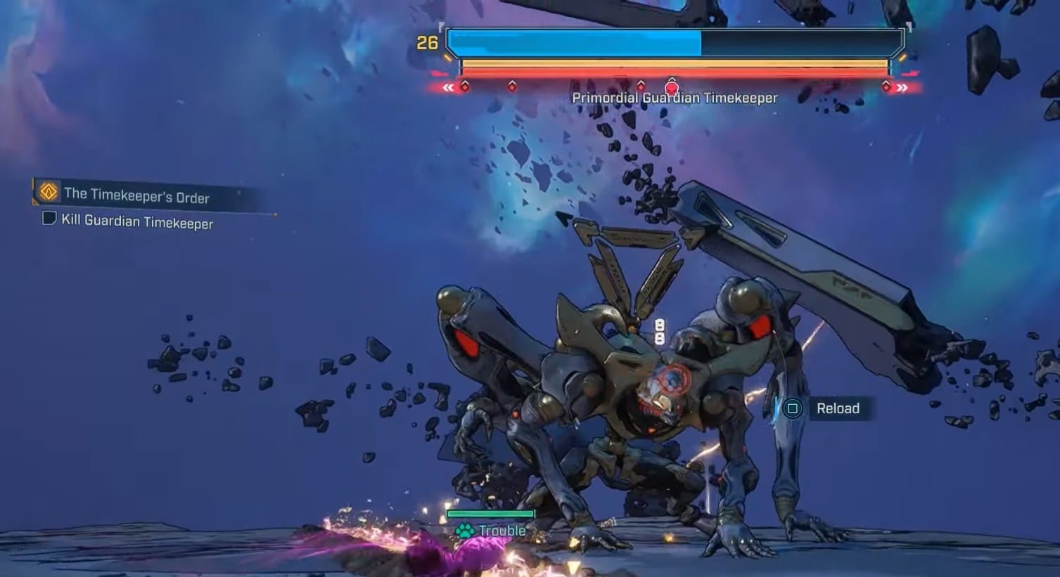 Step inside the tower and ride the central beam skyward—a cutscene rolls, unveiling the boss arena. Drop into the fight against the Timekeeper: dodge its temporal blasts and chip away at weak points on its chassis. Land critical hits during its recharge phases to stagger it.