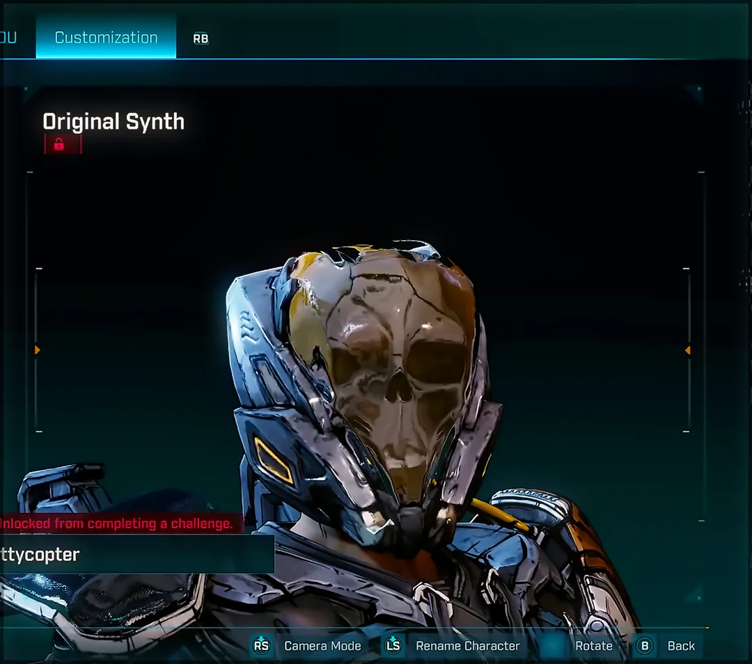 - To equip: go to Customization → Head for your Vault Hunter and select Original Synth.