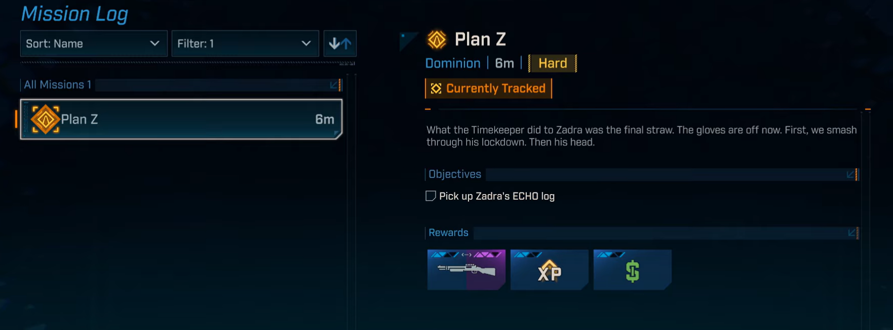 - Find and speak to Zadra to pick up The Timekeeper’s Order main mission.