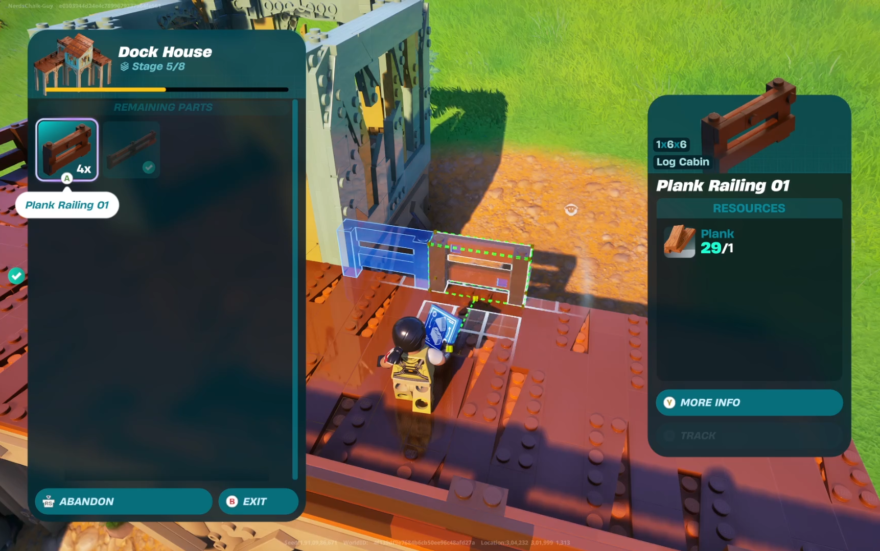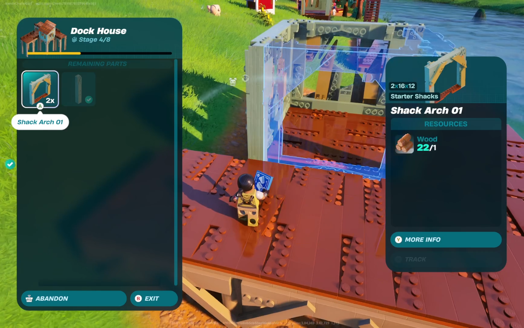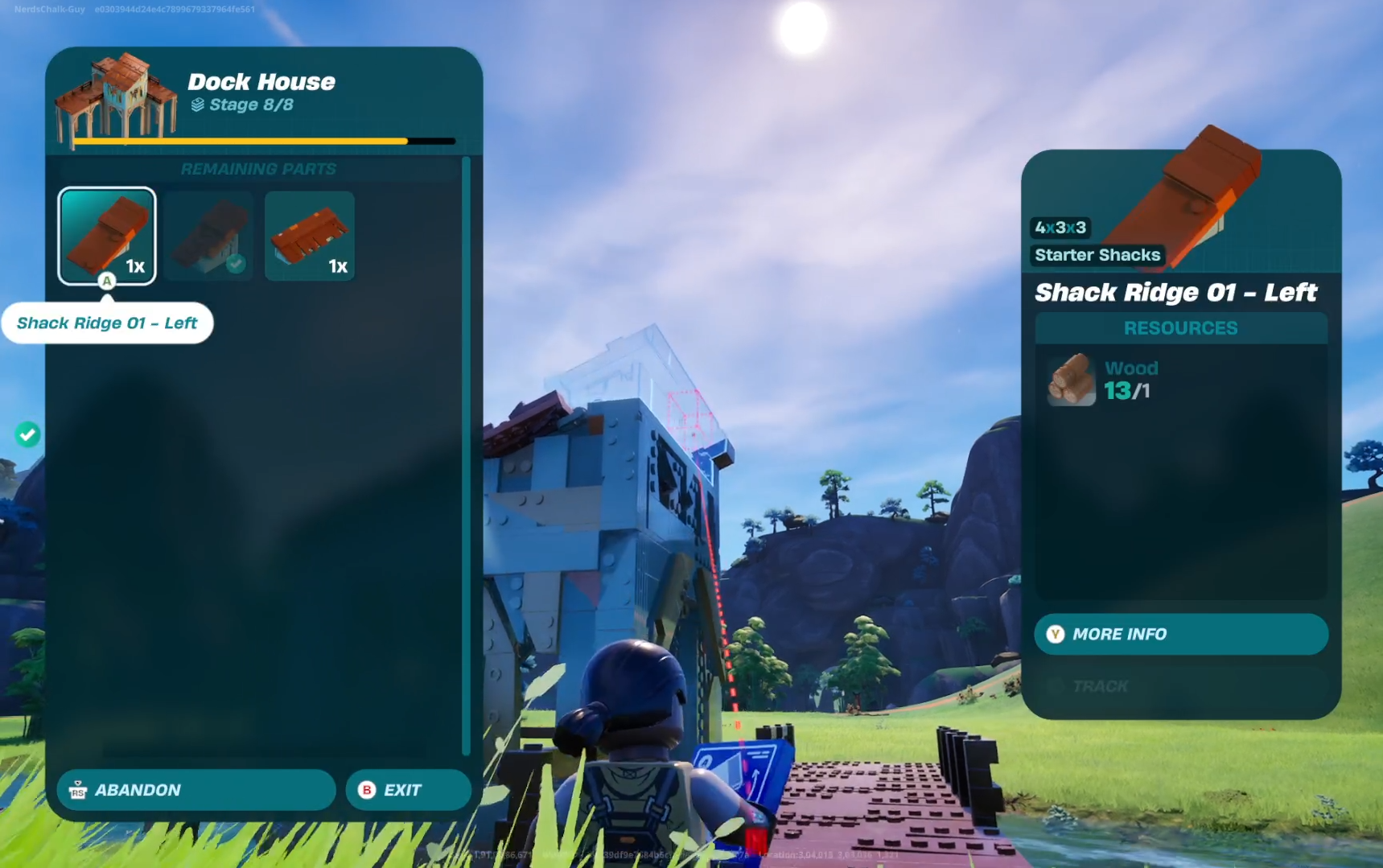 Dock House is a key early-to-midgame structure in LEGO Fortnite Ninjago, ideal for waterfront bases and expanding your village near water. Built across 8 detailed stages with a total upfront cost of 30 Wood plus 9 Planks remaining, it introduces advanced wall, railing, and roofing techniques while teaching precise piece placement on uneven terrain.