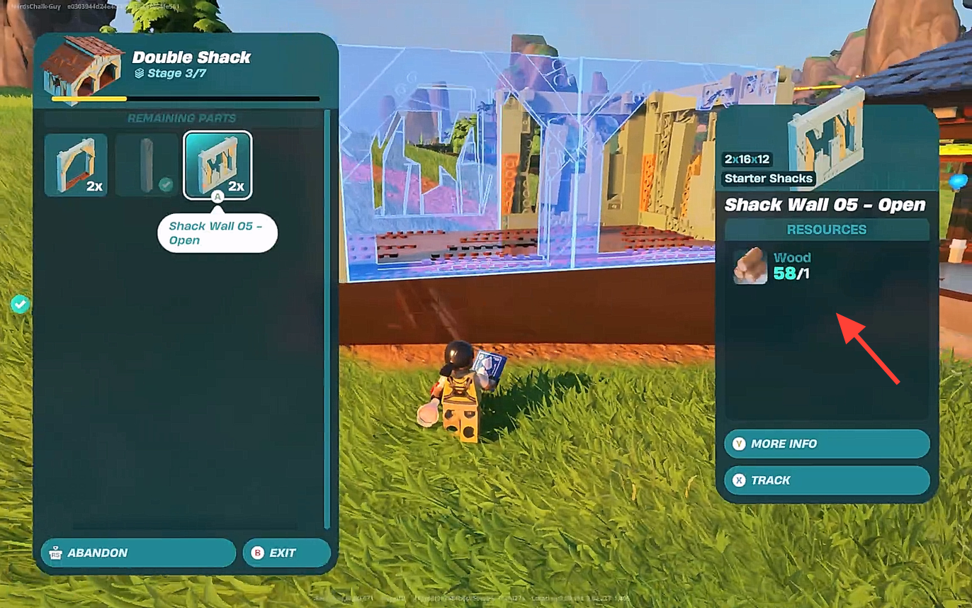 - Each Shack Wall 05 - Open requires 1x Wood.