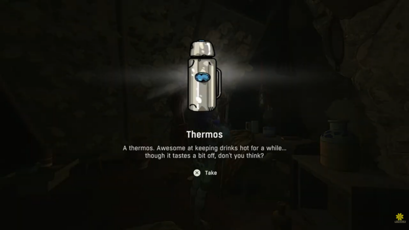 The game notes that the Thermos keeps drinks hot for a while, though the taste may be “a bit off.” While mostly a flavor detail, it reinforces Cairn’s grounded, human approach to items and rewards.