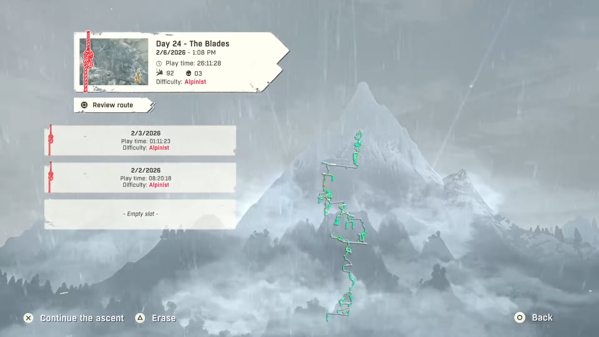 This time, pick the opposite dialogue option, Continue the ascent to commit to the summit attempt. This sets you on the Part of a Whole route, letting you see the alternative conclusion and unlock the corresponding trophy in the same overarching run.