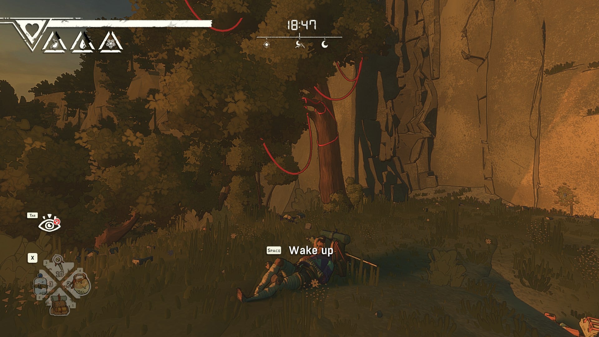 You do not always need the bivouac tent to recover in Cairn, and that is a big quality-of-life win when you are mid-route, low on time, or simply trying to keep moving. Outdoor sleep is a quick action you can trigger from the same tiny on-screen menu you use for other small utilities, so it is easy once you know where to look.