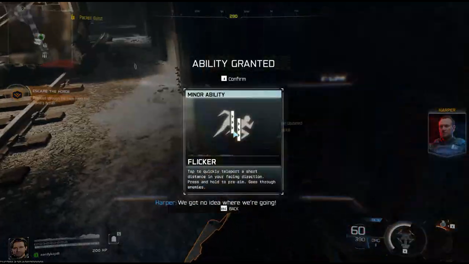 Activate Flicker while moving in a direction to instantly blink a few meters. It can be used to dodge sniper shots, escape close-range ambushes, strafe unpredictably, or rapidly reposition behind cover. Flicker excels when used reactively at the exact moment enemies shoot.